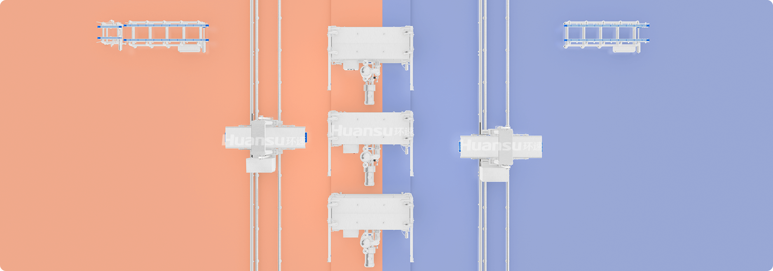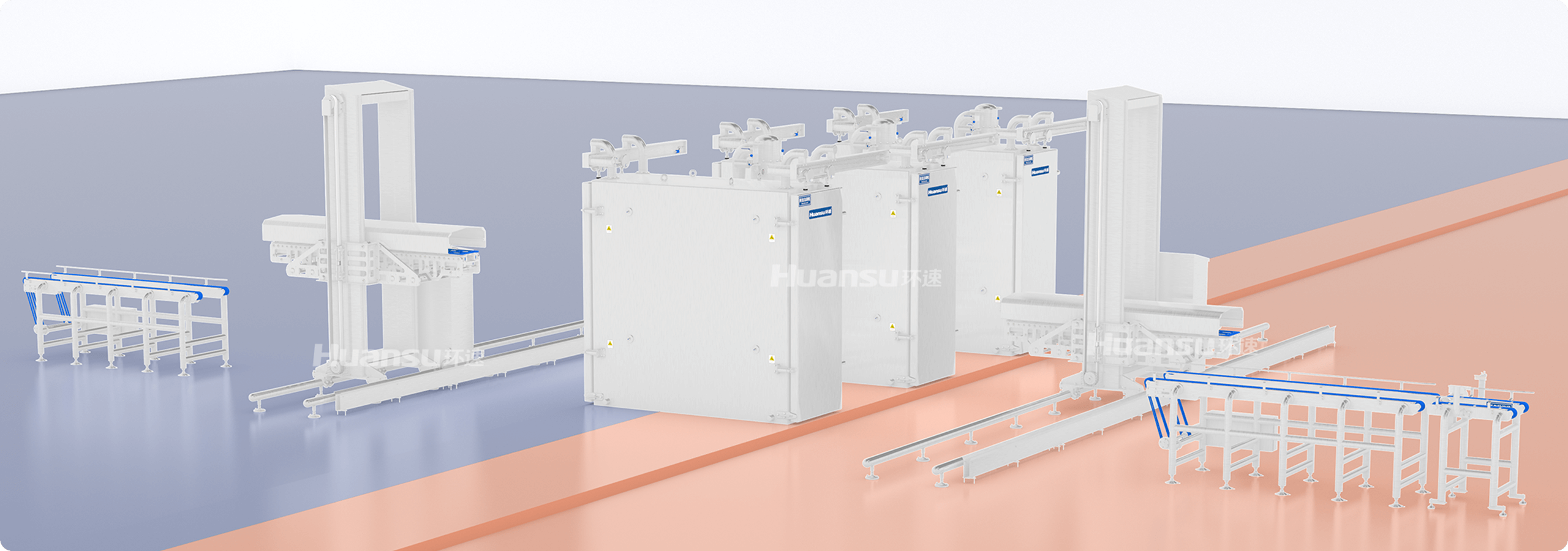 鲜食移送机按设定的程序抓取食品托盘,随后沿轨道运行,将食品投放至空闲的冷却机中;食品就位后,舱门自动关闭,真空系统开始抽真空,将高温食品快速降至目标温度;随后设备自动复压,自动开启出料端的舱门,由鲜食移送机进行出料。