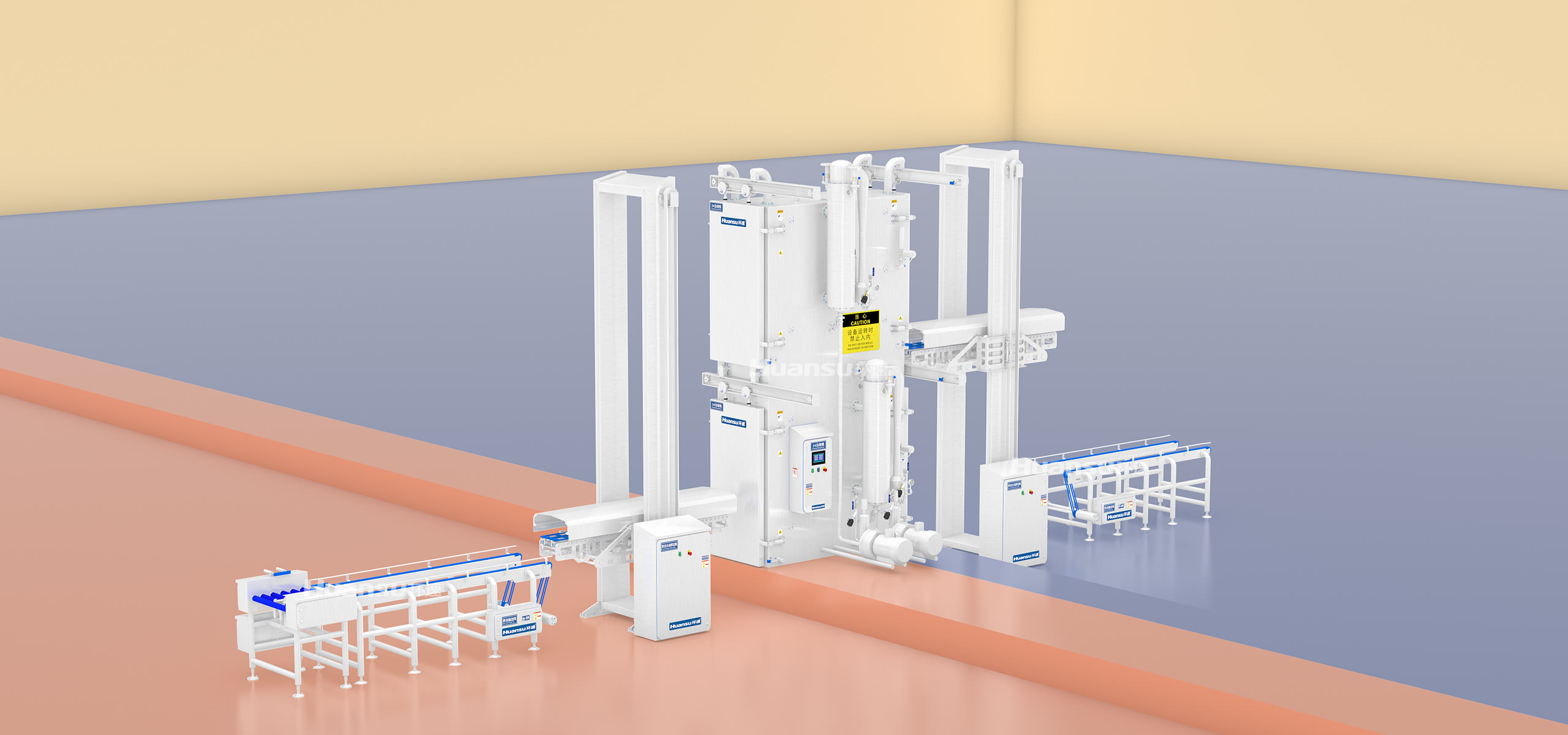 全线设备防水防潮,可直接进行高压水洗、化学清洗、高温蒸汽灭菌操作,方便日常维护;集成多项易清洗设计,确保清洗无障碍、污渍不残留。生产线的运行不产生污染,便于控制车间卫生。