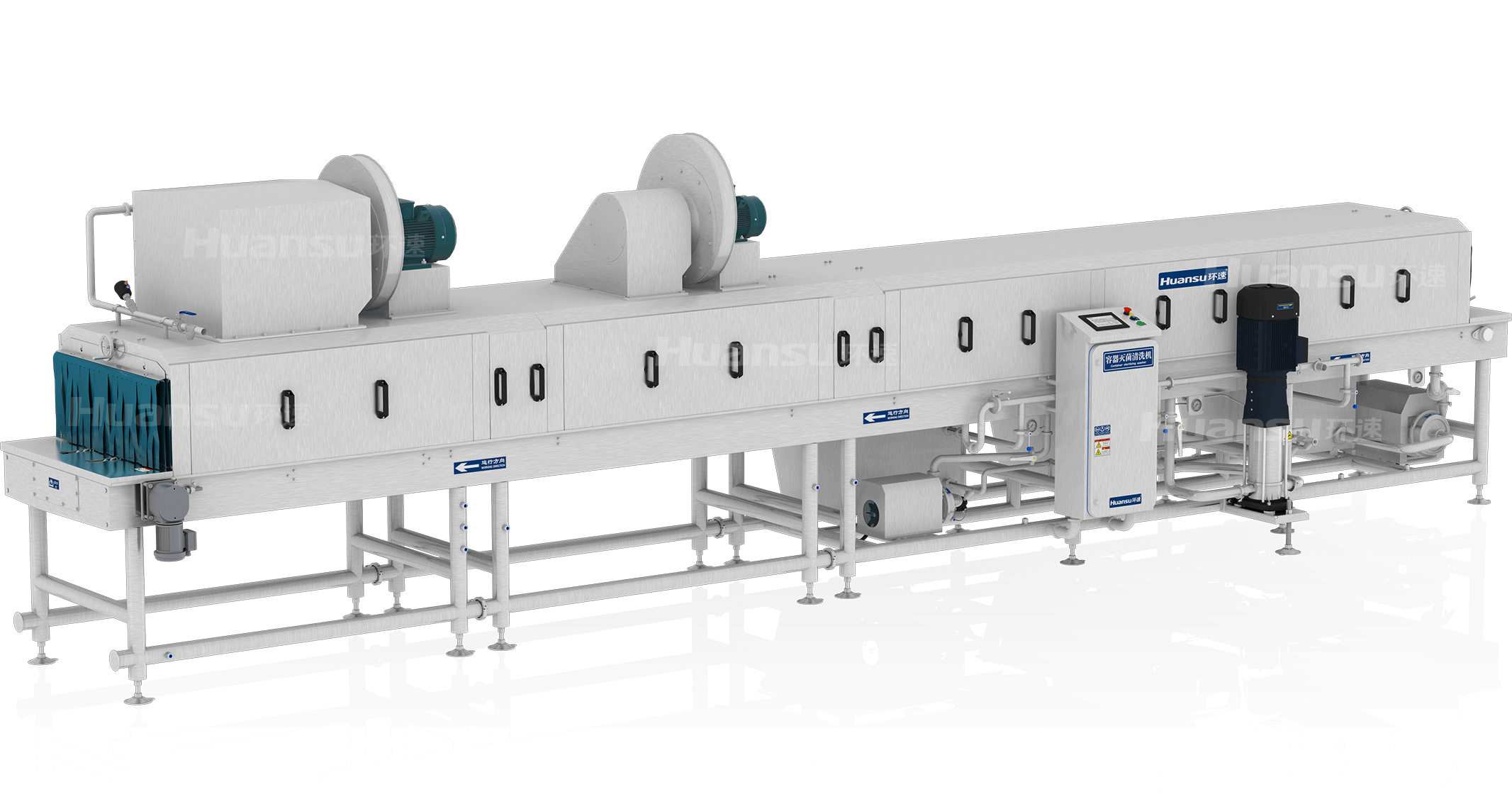 用于周转容器(筐、盘、箱等)的批量化灭菌清洗。