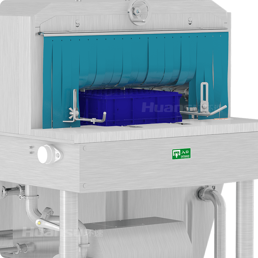 隧道侧挡板、管路、喷头等部件采用易拆设计,清洗无障碍。隧道进出口设有挡水帘,阻挡水和蒸汽泄露,保持车间卫生。