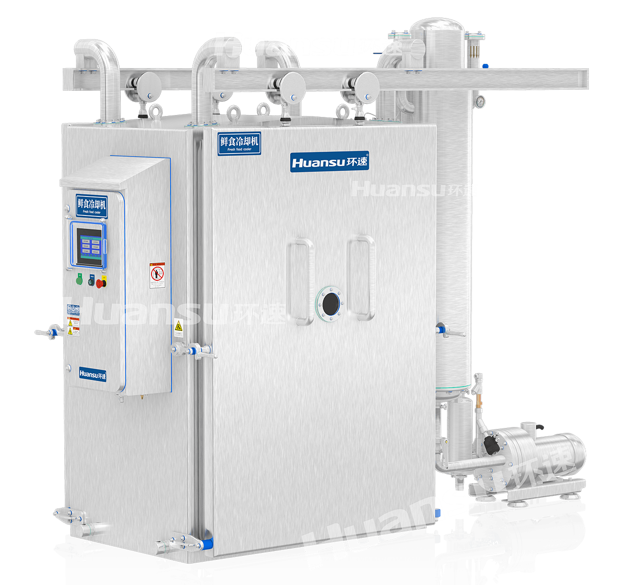 通过抽真空降低水的沸点,使食品含有的水分低温沸腾,吸收食物自身的热量。