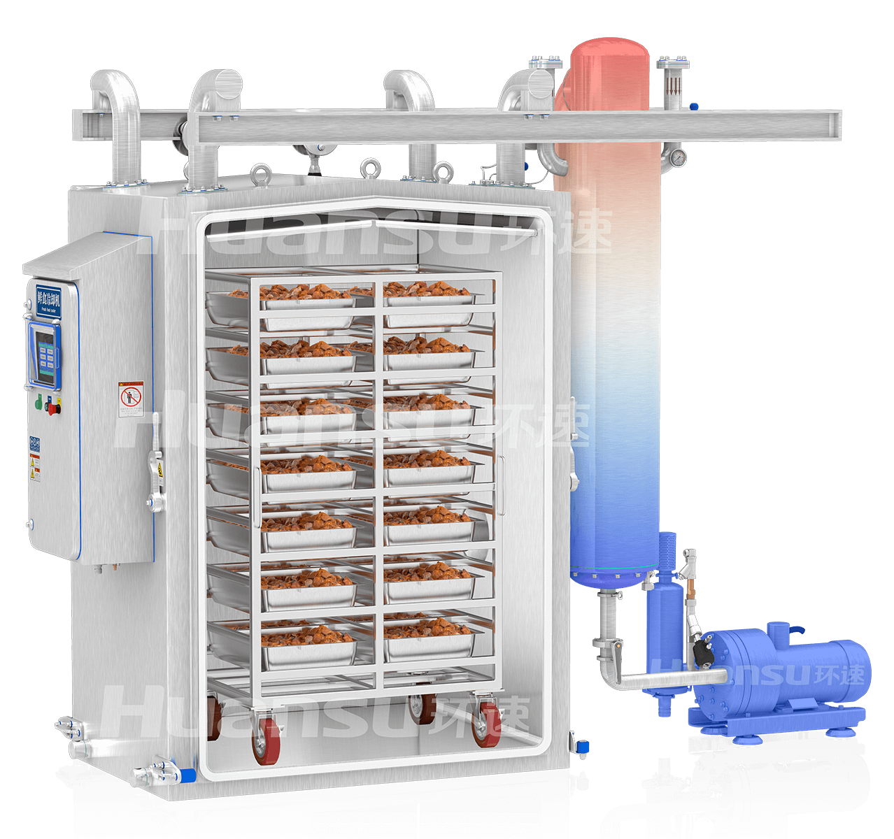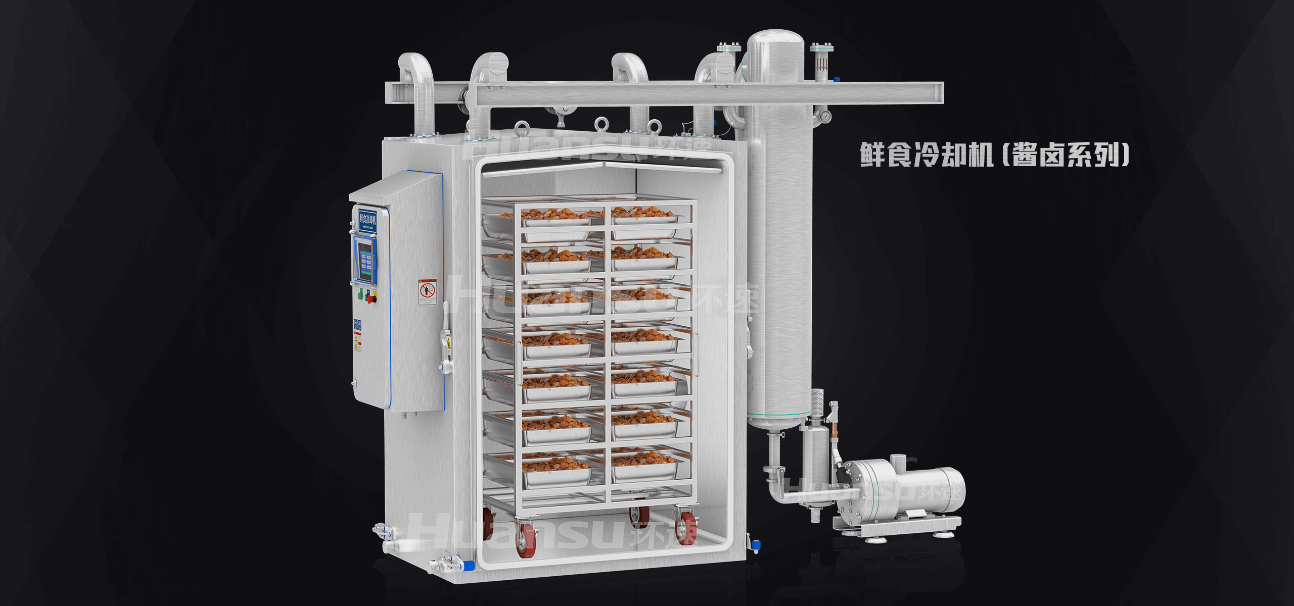 三级联合抽真空,促使食物中的水分低温沸腾吸热,使食品快速降温。