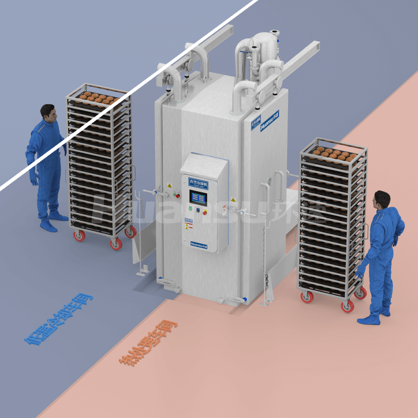 设备重视卫生防护,集成多项控菌设计,严防食品污染隐患。作业前启动蒸汽射流器预先对真空管路灭菌,创造洁净环境,防范交叉污染。冷却舱门框处采用食品级硅胶条密封,防止异物入侵,避免细菌感染。