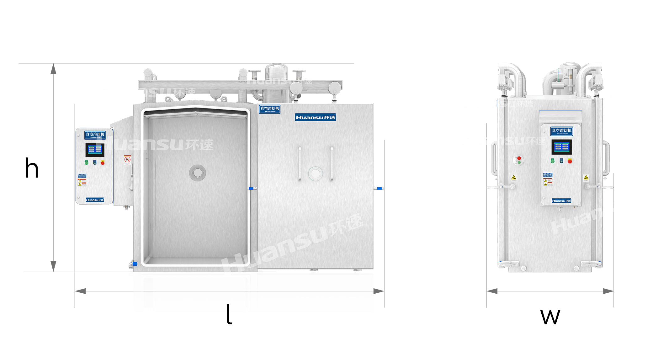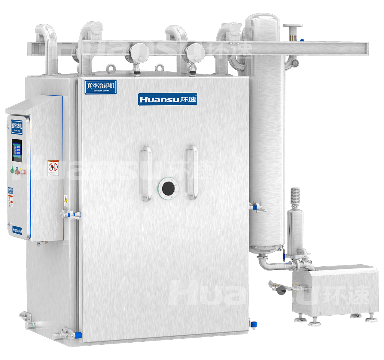 采用“三级联合抽真空”的技术方案,使冷却舱中形成真空,降低水的沸点,促使食物中的水发生低温沸腾,从食品中吸收热量。