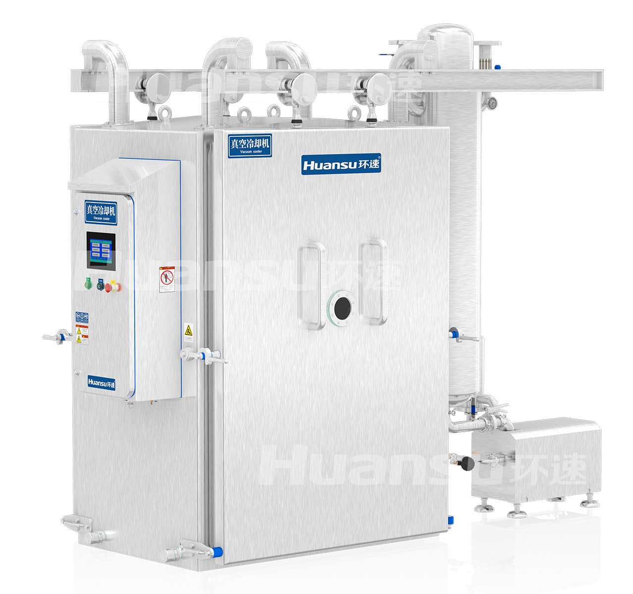 食品行业进入以品质为先、健康为本的发展新时期,面向精细化生产的产业升级已是大势所趋。传统酱卤生产模式下,完成热加工后的食品需要进行漫长的自然降温,等待过程中不可避免会发生氧化变色、失水变形、细菌感染等问题,不仅影响生产效率,还会导致食品安全隐患,于是需要人工冷却措施的介入。然而常规风冷、水冷、冷库等降温方式存在效率低、能耗高、卫生不过关等弊端,难以满足食品冷却的要求。针对以上问题,环速研发出了真空冷却机(酱卤系列),专注于酱卤食品的快速控菌冷却,集高质、节能、卫生等优势于一体,为企业降本增效的同时,更能助推产业结构的升级,打造核心竞争力,适应行业的未来发展趋势。