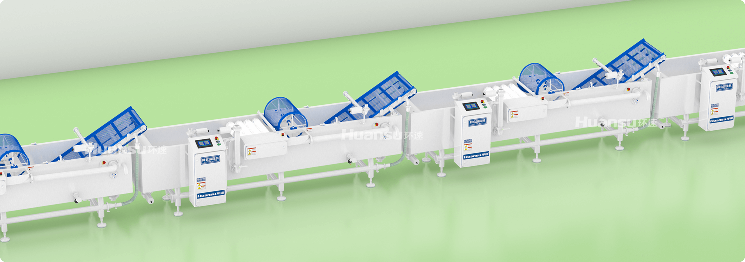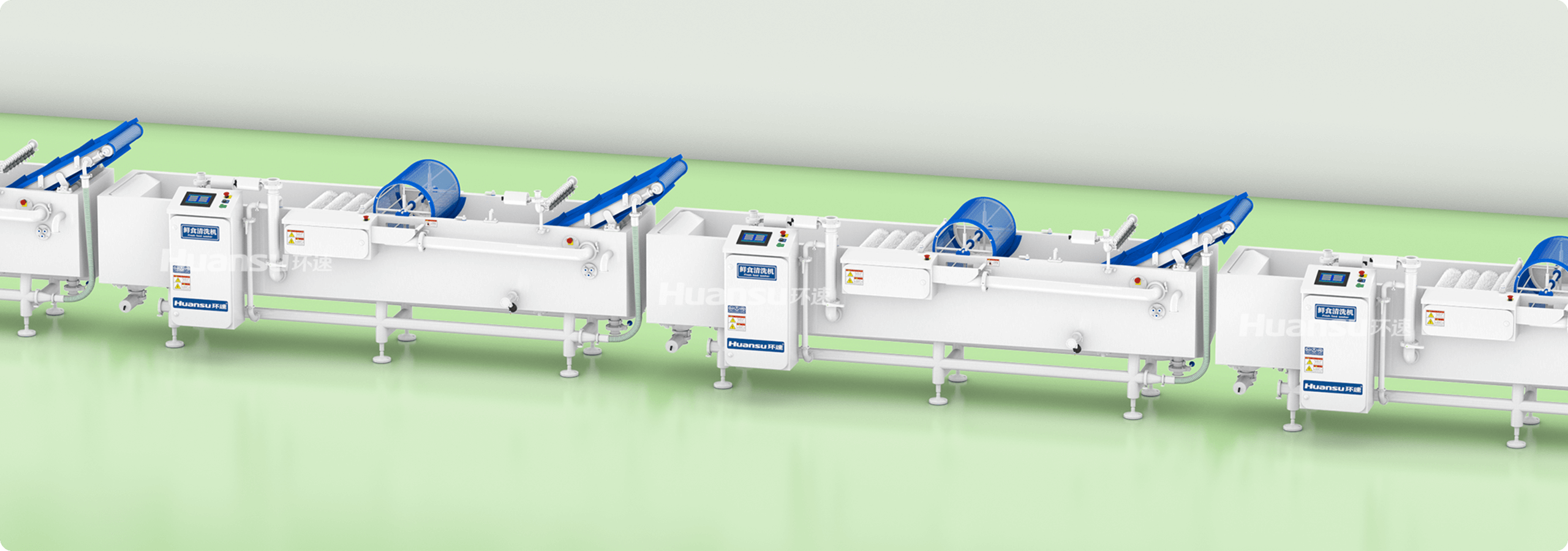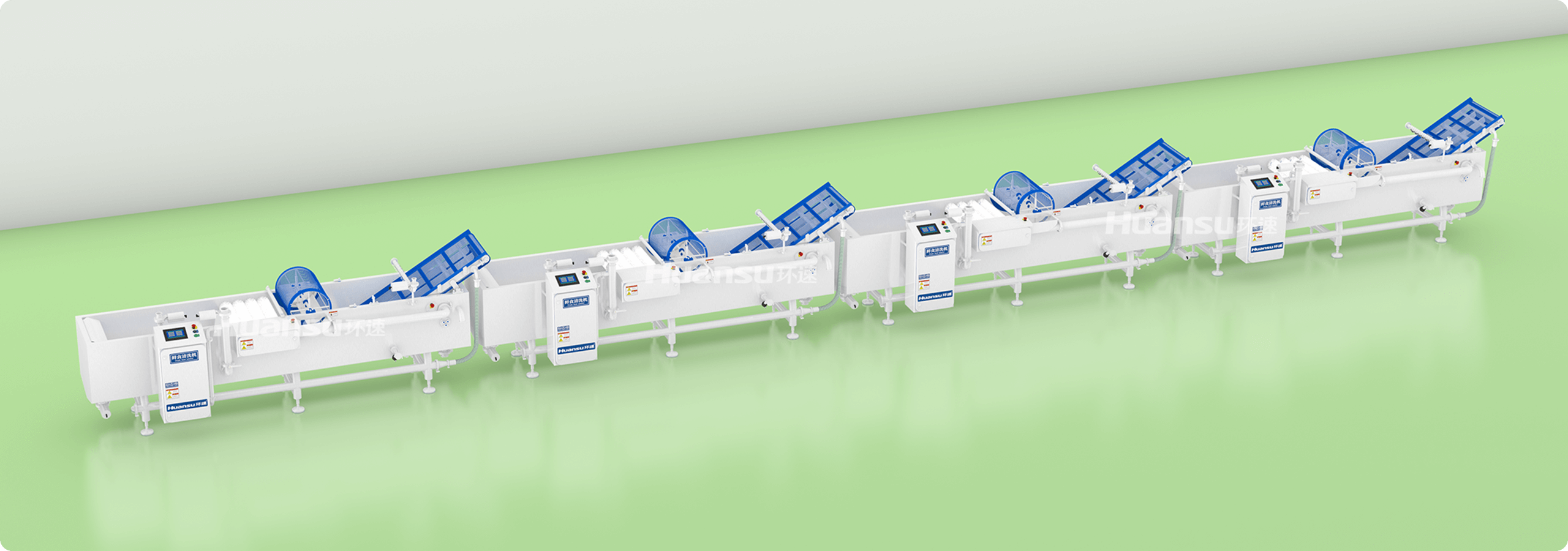 生产线集成多项控菌手段,设备的洁净度高,严控食品污染隐患。采用激光焊接、拉丝抛光等工艺,设备外表面光滑无死角,细菌无处滋生。清洗槽预留多功能接口,方便连接冷水、臭氧等装置对食材进行保鲜、杀菌处理。