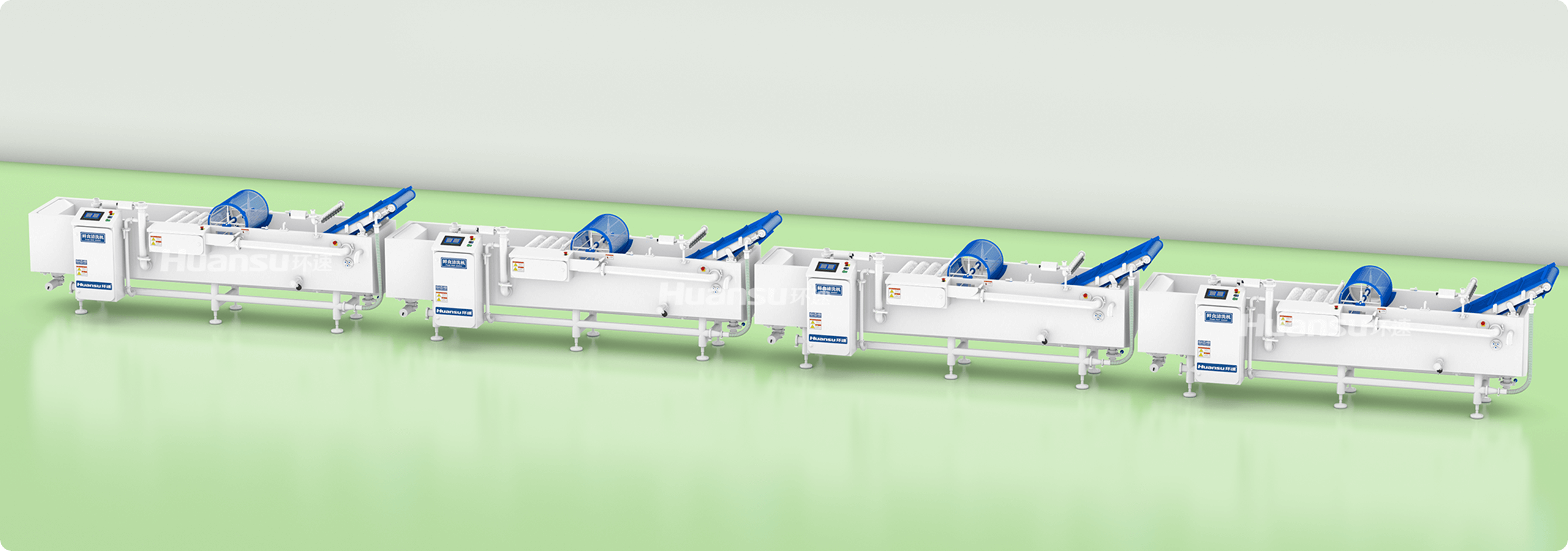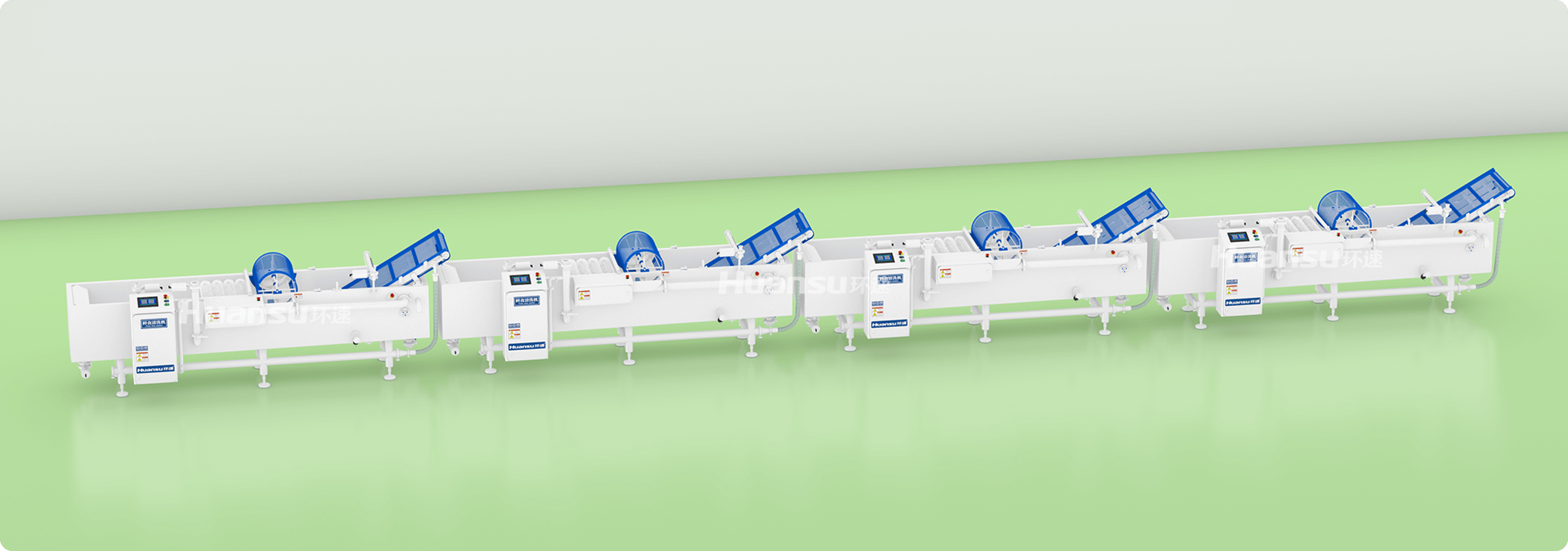 用于蔬菜、水果、肉食、水产等食材的大批量、连续式清洗。