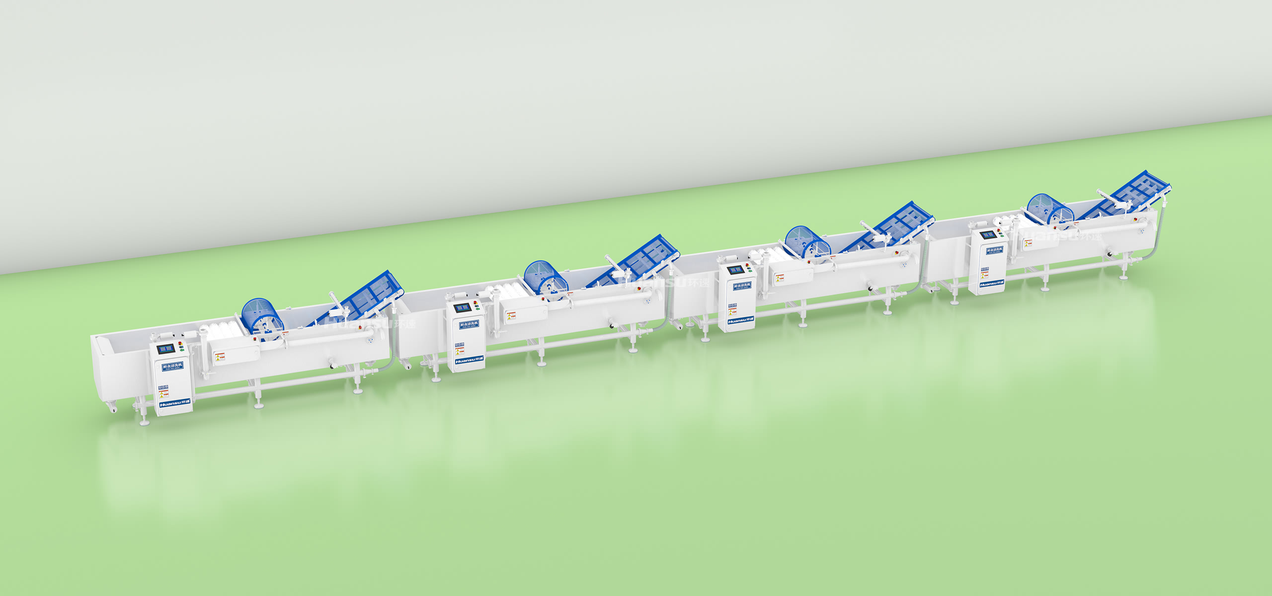 自动化生产线可提高水、电等资源的利用率,降低人工成本;循环水过滤系统可重复利用水资源,减少污水排放;水槽为双层设计,夹层由发泡材料填充,用于保温节能。