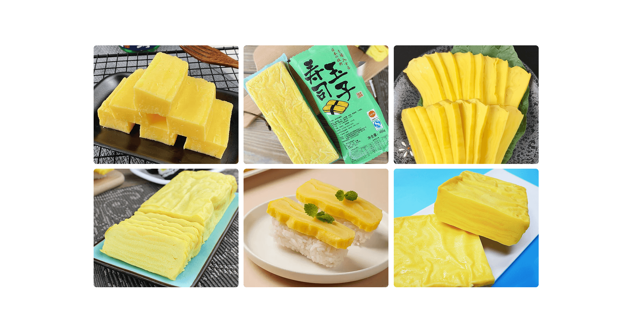 生产线效率高,每小时产量可达300kg。火候、蛋液灌装量、轨道速度均可根据用户的工艺要求来调节,确保产出的玉子烧符合品控标准。