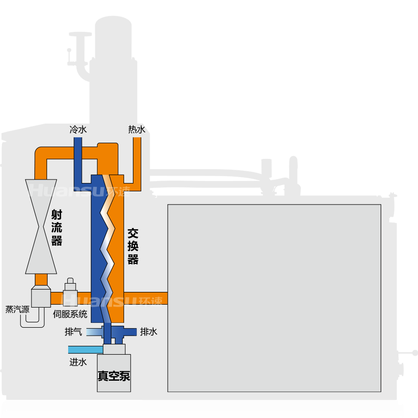 智能腌渍锅的真空系统由水环泵、蒸汽射流器、换热器组成,三者协同配合,可快速获得腌渍所需的稳定真空条件。系统配备伺服控制阀,可实现精密的气压控制,如阶梯式降压、呼吸式变压等,并可针对食材的种类定制智能变压曲线。
